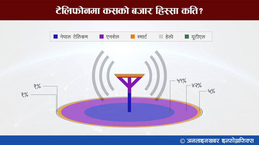 यूटीएलले ५ लाख २६ हजारलाई सेवा दिइरहेको छ । स्याटेलाइट टेलिमकको हेल्लो नेपालका प्रयोगकर्ता ३ लाख २८ हजार छन् भने स्मार्टका १८ लाख ५१ हजार ।